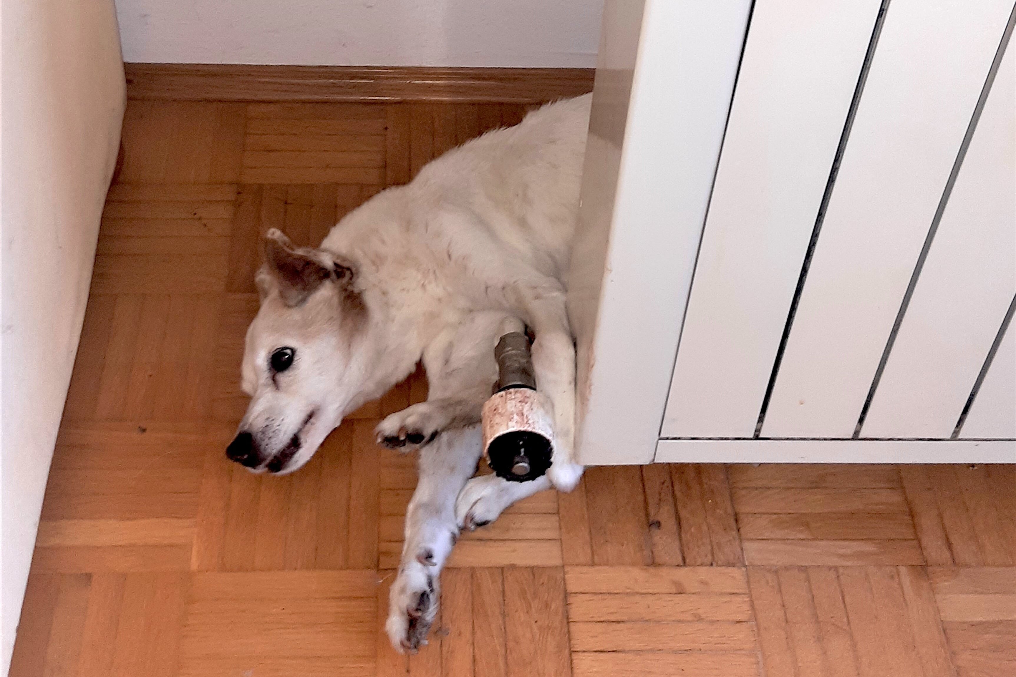 Pfote in Heizung eingeklemmt