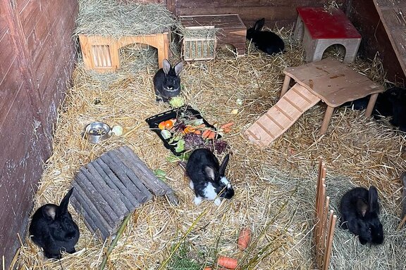 Hinzu kommt die ebenfalls tierschutzwidrige, ausschließliche Käfighaltung. Sie schränkt die Möglichkeit zur artgemäßen Bewegung stark ein und verursacht den Tieren Schmerzen und Leiden. Kaninchen sind bewegungsfreudig und brauchen genügend Platz, um zu rennen, zu springen und Haken zu schlagen. Die TVT schreibt für die Dauerhaltung von zwei Kaninchen eine Mindestfläche von 6m² vor. Als Faustregel gilt jedoch: Je größer, desto besser. Viele Tierfreunde richten ihren Kaninchen sogar ganze Zimmer ein und bieten ihnen im SommerAuslauf in einem Gehege im Garten.