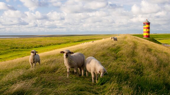Schafe grasen auf Deichen, weil sie eine wichtige Rolle für den Hochwasserschutz spielen. Durch ihr ständiges Abweiden halten sie das Gras kurz und dicht, wodurch eine feste, geschlossene Grasnarbe entsteht. Diese dichte Grasdecke schützt den Deich vor Erosion und verhindert, dass Regen oder Hochwasser die Erde aufweicht und den Deich instabil macht. Zudem treten die Schafe mit ihren Hufen den Boden fest, was die Widerstandsfähigkeit des Deiches weiter erhöht. Ihre natürliche Pflege sorgt also dafür, dass die Deiche stabil bleiben und die Küsten sowie Flussufer effektiv vor Überschwemmungen geschützt werden