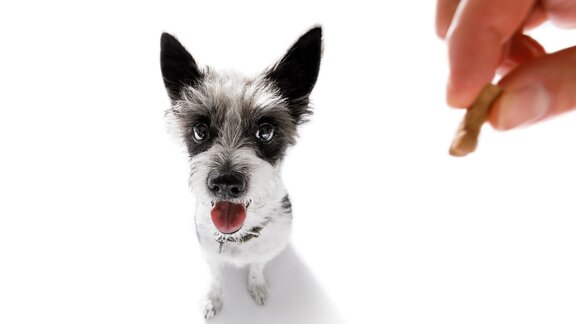 Jedes Mal, wenn Ihr Hund ruhig zu dem Fahrradfahrer blickt, belohnen Sie ihn für das Ruhigbleiben. Sollten Sie bei Ihrem Hund einen Marker oder Klicker aufgebaut haben, wäre dies genau der richtige Zeitpunkt, um diesen einzusetzen. Steigern Sie nun nach und nach die Intensität des Reizes und in unserem Beispiel die Entfernung zu dem Fahrradfahrer. Verringern Sie die Entfernung immer nur so weit, dass Ihr Hund weiterhin beim Anblick des Fahrrads nicht mit dem Bellen beginnt. Tut er dies doch, gehen Sie einen Trainingsschritt zurück und vergrößern den Abstand wieder so weit, dass es Ihrem Hund möglich ist, den Fahrradfahrer zu sehen, ohne zu bellen.