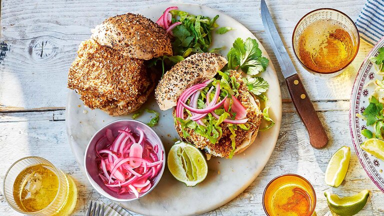 Gegrillter Katsu- Burger mit Wasabi-Mayo