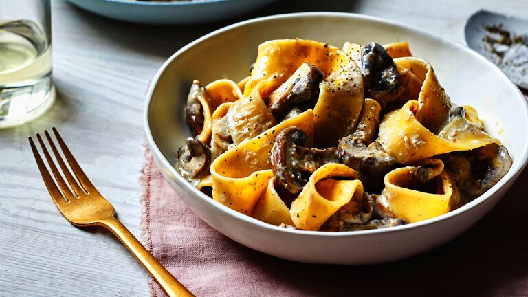Pappardelle mit Pilzen in cremiger Weißweinsauce