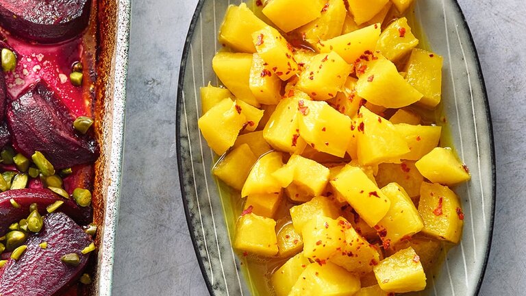 Gelbe Bete sanft gegart mit Vanille und Kurkuma