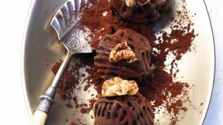 Kokoswirsing mit Shiitake Pilzen und Süßkartoffelbällchen