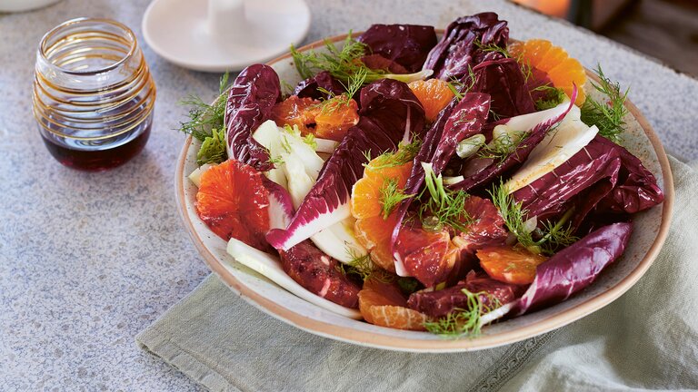 Blutorangen-Fenchel-Salat mit Radicchio, Kapern und Oliven