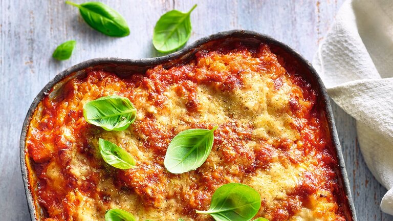 Knollensellerie-Lasagne mit Tofu-Bolo und Gruyère