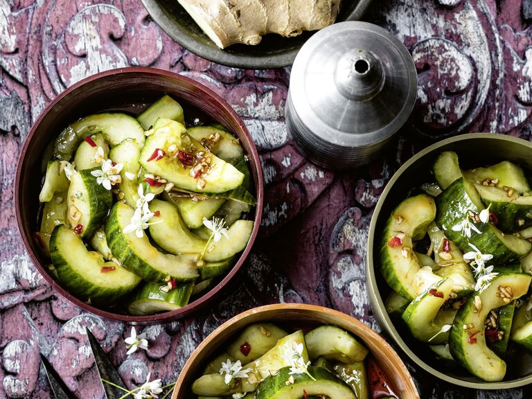„Geschlagener “ Gurkensalat mit Knoblauch und Chili