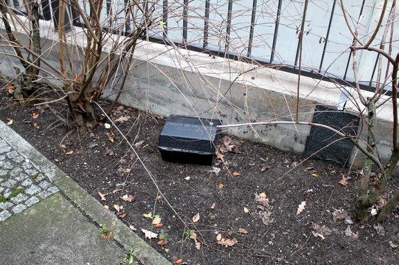 Hier wurden Ratten-Köderboxen in der Nähe von Mülltonnen an einem Wohnblock aufgestellt. Das dürfen nur Fachleute. Und diese müssen immer entsprechende Warnschilder mit Angaben zur Schädlingsbekämpfungsfirma und zum ausgelegten Gift aufstellen.