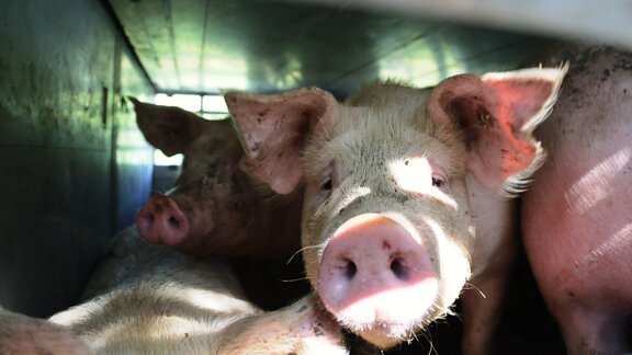 Selbst auf ihrem letzten Weg zum Schlachthof sind viele Tiere im Tiertransporter schrecklichen Qualen ausgesetzt.