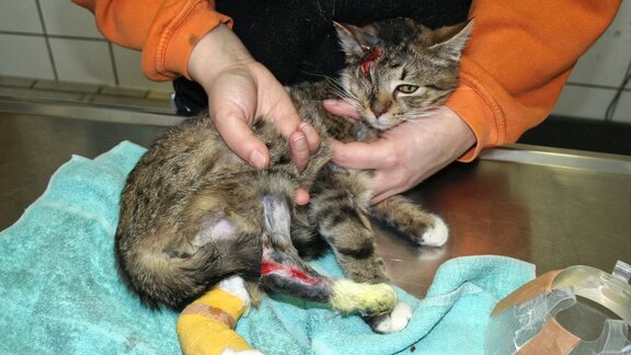Trifft man auf eine verletzte oder sehr kranke Katze, die sofortige Hilfe benötigt, kann man sie direkt zu einem Tierarzt bringen. Das gilt für Fundtiere und für herrenlose Tiere gleichermaßen. Schließlich ist es in dieser Notsituation kaum möglich, eine klare Unterscheidung zu treffen.