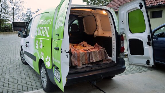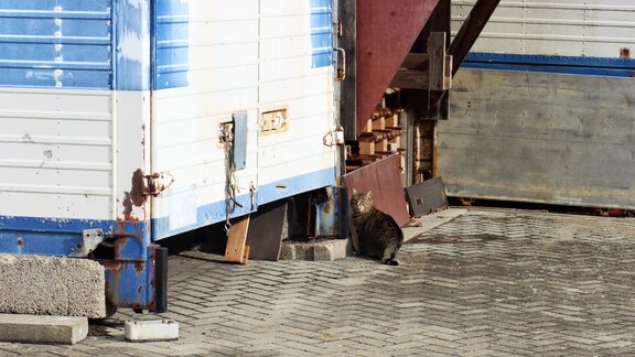 Die übrigen sechs sehr scheuen Samtpfoten ließen wir auf dem Speditionsgelände wieder frei. Vorher hatten wir ihnen aber noch in einem Container mehrere Schlafhäuschen und einen Futterplatz eingerichtet. Die Besitzerin des Grundstücks gibt den Katzen nun täglich Fressen und Herr Dürr, unser aktion tier-Mitarbeiter aus der Region, schaut regelmäßig nach dem Rechten.