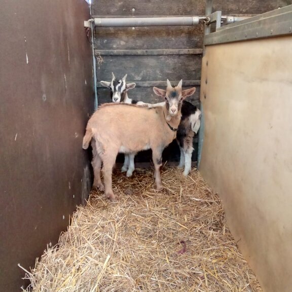 Mitte März hat das Team des aktion tier Lottihofs zwei junge Ziegenböcke von einem Acker an der Umgehungsstraße in Schwerin-Warnitz eingefangen. Bereits seit Freitag hatten besorgte Bürger immer wieder der Polizei als auch dem aktion tier Lottihof von den Tieren berichtet, die sich teilweise gefährlich nah an der Straße aufhielten. Dann bat das Veterinäramt das Team vom aktion tier Lottihof offiziell um Hilfe, und die Mitarbeiter durften die Zwergziegen einfangen. Dies gestaltete sich allerdings recht schwierig, denn die beiden Böcke zeigten sich eher wenig kooperativ. Nach über drei Stunden hatten es die aktion tier Mitarbeiter dann geschafft. Die Tiere konnten in den mitgebrachten Pferdehänger verladen und sicher zum aktion tier Lottihof gebracht werden. Dort wurden sie tierärztlich untersucht und versorgt. Unklar ist, woher die beiden jungen Ziegenböcke stammen. „Derzeit gibt es keinerlei Hinweise auf den/die Halter/in!“, sagt Christine Geburtig, Leiterin des aktion tier Lottihofs. „Wir sind dankbar für Hinweise, die uns helfen, die Besitzer der beiden Ziegen zu finden!“ Wer dazu Auskunft geben kann, meldet sich bitte direkt auf dem aktion tier Lottihof.