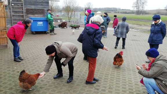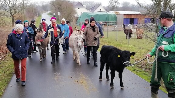 Am 16. Januar wurde der 60. Geburtstag einer Dame aus Schwerin mit ihrer Wandergruppe "Flotte Füsse“ gefeiert. Es gab einen Eselspaziergang, Kaffee und Kuchen und einen Rundgang über den Hof.