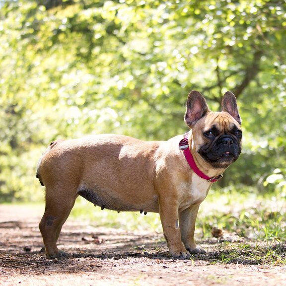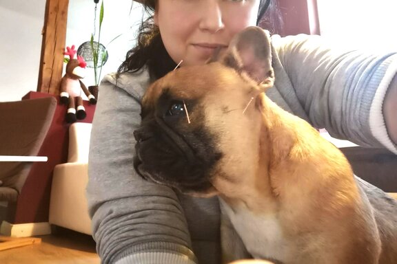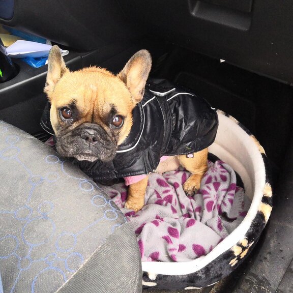 Auch die Französische Bulldogge Mathilde befand sich unter diesen Hunden. Mathilde war zu dem Zeitpunkt knapp drei Jahre alt und gesundheitlich ebenfalls sehr angeschlagen. Trotz ihres jungen Alters war sie kein fröhlicher und aktiver Hund. Sie wirkte schlapp, antriebslos und lag viel. Man hatte das Gefühl, dass ihr einfach die Kraft fehlte, denn immer wieder ließ die kleine Hündin durchblitzen, dass ihr der Schalk im Nacken sitzt und dass sie kämpfen möchte. Wir wussten, dass Mathilde Probleme mit ihrer Leber hat – nun stand noch die genaue Diagnostik aus. Nachdem wir Blutuntersuchungen und eine Computertomografie veranlassten, hatten wir Gewissheit. Mathilde litt unter einem, vermutlich angeborenen, Lebershunt – einer Fehlbildung bei der es zur Störung der Leberdurchblutung kommt und die dafür sorgt, dass die betroffenen Tiere Symptome einer inneren Vergiftung zeigen. Die einzige Möglichkeit Mathilde zu helfen war eine Operation in der Tierklinik. Gesagt, getan… Mathilde war nach wie vor alles andere als ein fitter, gesunder Hund und so bangten wir in den Stunden des Eingriffs. Aber sie zeigte uns, dass sie leben möchte und überstand die Operation. Zur Sicherheit blieb sie noch ein paar Tage stationär in der Tierklinik, und auch hier wickelte sie jeden um den Finger.
