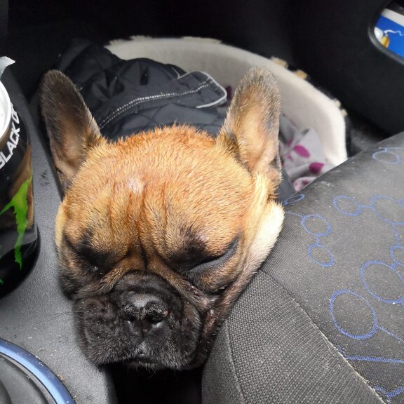 Und dann war es so weit – Leipzig war nur noch zwei Stunden entfernt. Wir fuhren früh am Morgen los, um pünktlich um acht Uhr in der Klinik zu sein. Dort angekommen ging es ganz schnell – nach der Weitergabe der bisherigen Befunde und Behandlungen musste ich mich von Mathilde verabschieden. Sie sollte gleich in Narkose gelegt werden, dann ins CT, zur Endoskopie und – je nach Diagnose – direkt operiert werden und danach noch stationär in der Klinik bleiben. Gerade im Tierheim angekommen, kam dann der Anruf – heute wird nicht operiert. Wir fuhren wieder los, um Mathilde abzuholen. Vor Ort dann die Erleichterung: Mathilde leidet „nur“ unter einer eitrigen Rhinitis, die in Verbindung mit dem Brachyzephalen Syndrom die Atemprobleme verursacht. Wir mussten uns nun erst einmal um die Rhinitis kümmern und danach das Brachyzephale Syndrom operativ beheben. Ein neuer Medikamentenplan wurde erstellt, und wir fuhren nach Hause.
