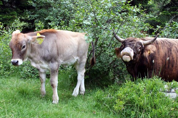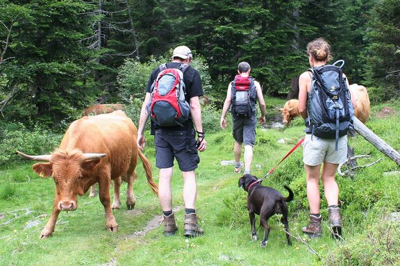 - Weidetiere niemals aufschrecken oder hinter ihnen herlaufen und auch nicht mit Stöcken herumwedeln. Eine in Panik geratene Rinderherde ist unberechenbar.