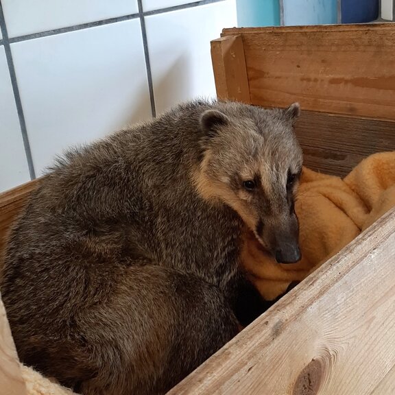 Nasenbär findet Ruhe in der Wildtierstation