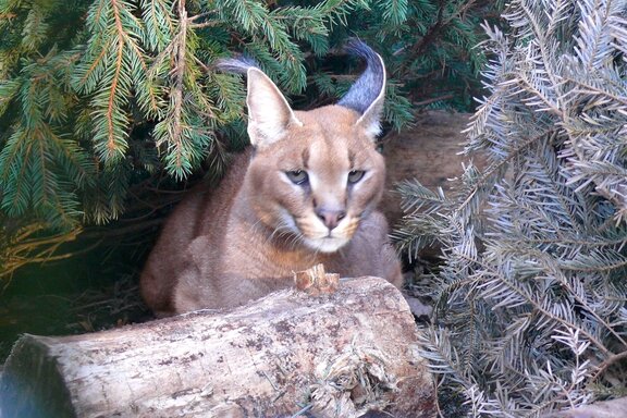 Jörg Beckmann, stellvertretender Direktor des Tiergartens Nürnberg, schaut zurück: „Der Wüstenluchs wurde vor gut vier Wochen nach einer anonymen Anzeige in einer Mietwohnung gefunden!“. In einer anonymen Mail an das Veterinäramt Weiden stand: „In einem Wohngebiet mitten in Weiden hält eine Frau einen Wüstenluchs“, berichtet Veterinärin Barbara Bäumler. Bei einer von der Polizei unterstützten Kontrolle vor Ort wurde tatsächlich ein Karakal in der Mietwohnung gefunden. In der Küche standen eine Hundehütte und ein Katzenklo als Einrichtung für den fauchenden und alles andere als zahmen Karakal. Mit einem Blasrohr konnte das Tier betäubt werden. Der Tiergarten Nürnberg stimmte der kurzfristigen Unterbringung des Karakals im Tiergarten zu.