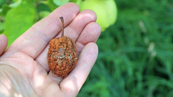 Wenn man Wal- und Haselnüsse vom Baum oder Strauch pflückt, läuft man Gefahr, dass sie noch nicht reif sind. Daher wartet man lieber, bis alles von Mitte September bis Ende Oktober selbst herunterfällt. Wie beim Obst sollten wir auch bei den Nüssen an die Wildtiere denken und einen Teil an Ort und Stelle liegenlassen.