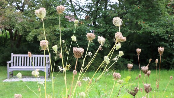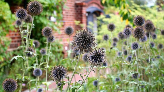 Die Samenstände von Stauden, Disteln und Sonnenblumen werden in der kalten Jahreszeit besonders gerne von Finken, Meisen und Sperlingen herausgepickt. Daher ist es besser, diese Pflanzen im Herbst einfach als Ganzes stehen zu lassen und erst im kommenden Frühjahr die Stängel abzuschneiden. In diesen verstecken sich außerdem Insekten wie Wildbienen und Florfliegen sowie Spinnen zur Winterruhe.