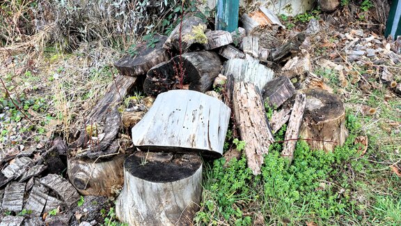 Alte Bäume sollten nach Möglichkeit erhalten werden, und wenn ein Baum abstirbt, kann man gut den Stamm einfach stehen lassen. Wer keine Bäume hat, kann für unseren schwarzen Brummer und viele andere holzliebende Insekten Totholz in einer voll besonnten Gartenecke ablegen. Am besten eignen sich alte, trockene und bereits leicht in Zersetzung befindliche Stücke unterschiedlicher Größe. Alles ein bisschen wild durcheinander anordnen, mit stehenden und liegenden Teilen.