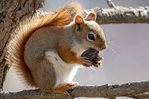 - Rothörnchen (Tamiasciurus hudsonicus) In Nordamerika heimisch. Wird als Pelztier in großer Zahl hauptsächlich in Kanada durch Fallenfang gejagt.