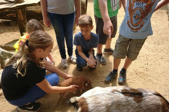 Für den 27.06.2017 stand für die Grundschüler des AWO Hortes der Besuch des Tierparks in Bischofswerda auf dem Sommerferienplan. Nach Eintreffen auf dem Tierparkgelände und Begrüßung durch das Ehepaar König wurden unsere 38 Grundschüler in Gruppen für unterschiedliche Stationen eingeteilt. So gab es eine Führung durch den Tierpark, welcher am 13. August 2017 sein 60jähriges Jubiläum feierte. Dabei wurden nicht nur die Tiere, sondern auch zahlreiche Modernisierungen und Verbesserungen für die artgerechte Haltung der Tiere vorgestellt. Die schönsten und intensivsten Momente waren natürlich die Augenblicke, in denen man die Tiere mit allen Sinnen durch Fühlen, Hören, Riechen und Sehen wahrgenommen hat. Im Streichelgehege der Ziegen hatten daher selbst die Erwachsenen viel Spaß und Freude.