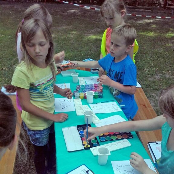 Zudem konnten die Grundschüler bei den Stationen der Zooschule ihres Alters entsprechend unterschiedliche Arbeitsblätter bearbeiten. Zum Beispiel haben die Kinder der 1. und 2. Klasse bei den abgebildeten Tieren ein oder zwei wichtige fehlende Körperteile herausgefunden und auf dem Blatt ergänzt. Abschließend konnte das Tier mit den richtigen Farben ausgemalt werden. Die Kinder der 3. und 4. Klassen sollten das „Das große Tierparkrätsel“ lösen. Die Antworten auf Fragen: „Wie heißen die männlichen Ziegen?“, „Zu welcher Tiergruppe gehört der Europäische Luchs?“, „Wie heißt der größte einheimische Eulenvogel?“ und weitere sechs Fragen ergaben das Lösungswort. Wer flink und rasch arbeitete, konnte noch Tiere aus Papier, Federn und Naturmaterialien basteln.
