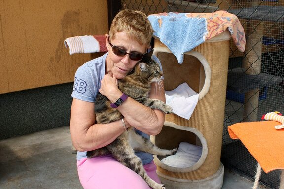 Mein Arbeitsalltag beginnt um 8 Uhr mit der Sichtung der anfallenden Aufgaben, Wäsche auf- und abhängen, einsortieren der Decken und Handtücher. Dann wird besprochen, wer sich um die Hundezimmer, die Katzenräume und das Kleintierhaus kümmert. Wir Ehrenamtlichen springen da ein, wo wir benötigt werden. Wir reinigen die Räume der Katzen und Hunde sowie die Ausläufe. Bei den Kleintieren gehört auch das Füttern zu unseren Aufgaben. Inzwischen kenne ich alle Hunde und Katzen. Ich nutze natürlich auch beim Reinigen die Gelegenheit, die Hunde zu kraulen und sie mit Leckereien zu verwöhnen. Die Katzen sind meist so liebebedürftig, dass man es nicht vermeiden kann, sich eine Weile mit ihnen zu beschäftigen bevor die Arbeit weitergehen kann. Eine sehr aufmerksame Kontrolle eventueller Veränderungen