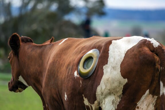Die Fistulierung und die dadurch möglichen Einblicke in den Verdauungsprozess der Kühe soll noch einem weitern Zweck dienen: Bei der Verdauung entsteht im Magen der Kuh Methangas, was kontinuierlich ausgerülpst wird. Bei insgesamt ca. 12 Millionen Rindern und Milchkühen, die in Deutschland gehalten werden, kommt eine Menge zusammen. Knapp 5% der deutschen Treibhausgas-Emissionen entstammen Kuhmägen. Hierfür ist die Zusammensetzung der Ernährung der Wiederkäuer von großer Bedeutung, weshalb auch an klimaneutraleren Möglichkeiten für die Fütterung fleißig geforscht wird.