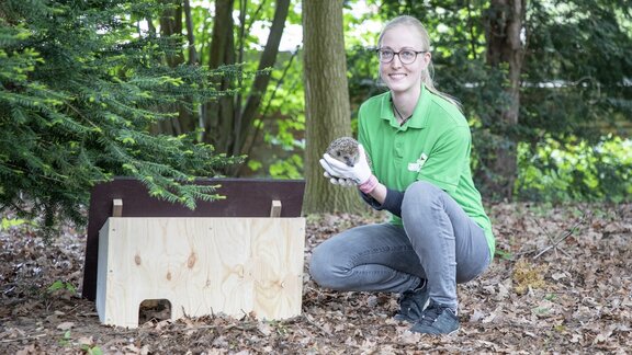 Da in diesem Fall der Fundort leider nicht gerade igelfreundlich und somit ungeeignet war, haben wir uns für das sogenannte „Soft-Release“ an einer igelfreundlichen Stelle entschieden. Zunächst kommt der Igel in ein geschlossenes Gehege, wo er sich seine Schlaf- und Futterstelle einprägen kann. Nach einer Eingewöhnungszeit von ca. zwei Wochen wird das Gehege geöffnet. Der Igel kann nun erste Erkundungstouren in die Umgebung machen. Ziel ist es, dass der Igel weiterhin zum Fressen und Schlafen ins Igelhaus zurückkehrt, bis er natürliche Schlafplätze und Futterstellen gefunden hat.