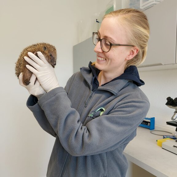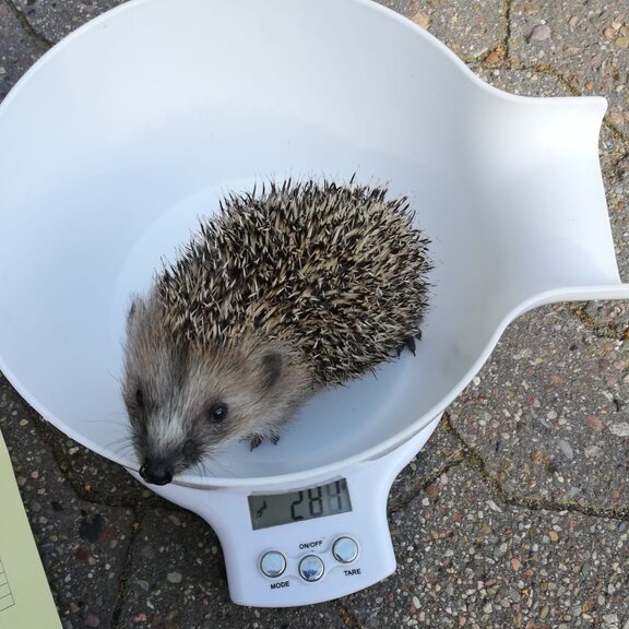 Die tägliche Pflege besteht aus der Reinigung der Unterbringung, einem Check-up des Igels mit Gewichtskontrolle und einer Erneuerung von Futter und Wasser. Das Gewicht sowie Auffälligkeiten in der Futteraufnahme oder im Kotabsatz sollten auf einem Pflegeprotokoll dokumentiert werden. Bitte nur milde Reinigungsmittel verwenden und immer gut nachspülen, da die Igelhaut sonst schnell angegriffen wird.