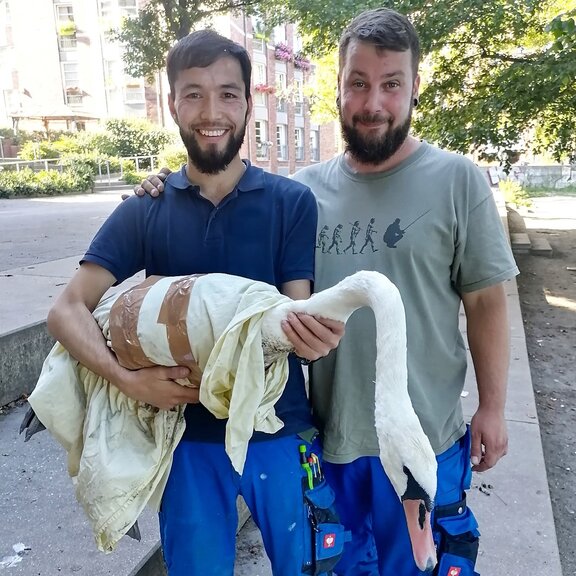 Schon öfter mussten wir durch Angelgerät verletzte Schwäne einfangen.