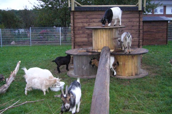 Und dann kam der große Moment: Wir holten die Ziegen aus dem Stall und brachten sie zu ihrem neuen Gehege. Die Aufregung war groß als die Ziegen ihr neues Gehege erkundeten, und sie fingen natürlich sofort an, die Weidezweigen zu beknabbern. Danach gab es erstmal für uns und Frank Weber mit Kamerateam und unseren kleinen Helfern ein schönes Mittagessen.