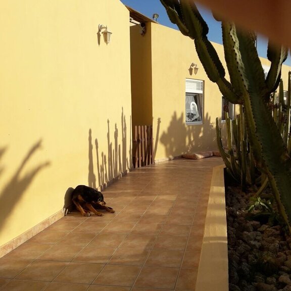 Auf Teneriffa angekommen, war- teten Frau Gonzales und ihr Mann bereits auf mich, wir begrüßten uns ganz herzlich und fuhren auf das Refugium Accion Del Sol. Sie zeigte mir bereits am Abend ein bisschen was vom Gelände und auch mein Appartement, was ich für die nächsten zwei Wochen beziehen durfte. An den darauffolgenden Tagen lernte ich das Tierheim besser kennen, lernte die Mitarbeiter zu schätzen, die sich jeden Tag um so viele Hunde kümmern und sie pflegen so gut es geht. Den Tierarzt lernte ich auch kennen, der sich liebevoll jeden einzelnen Hund genau anschaut und kontrolliert wie gesund und fit dieser ist. Meine Arbeit bestand darin ein Hundehaus zu pflegen, wofür ich die alleinige Verantwortung hatte. Sauber zu machen hieß, Kot entsorgen, Wasser zu wechseln und alle zwölf Hundezimmer auszuspülen. Man braucht ungefähr drei Stunden für ein komplettes Haus.
