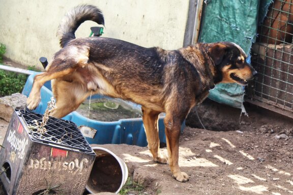 Gassigehen kennen die Hunde nicht. Lediglich der mit Gerümpel, Abfall und Bauschutt übersäte Hinterhof steht ihnen zur Verfügung. Diese lieblose und in keiner Weise artgerechte Haltung, die eher wie das Wegsperren von Strafgefangenen wirkt, verstößt gegen Tierschutzgesetz und Tierschutzhundeverordnung. Letztere schreibt zum Beispiel in §2 vor, dass Hunden ausreichend Auslauf im Freien gewährt werden muss, damit sie sich ordentlich bewegen und neue Reize aufnehmen können. Allerdings meint „ausreichend Auslauf“ nicht das Herauslassen auf einen Hinterhof. In unserem Fall ist dieser auch noch nach allen Seiten blickdicht abgeriegelt, so dass die Tiere nicht einmal nach draußen sehen können.
