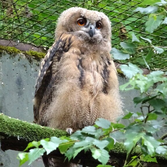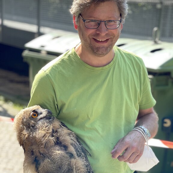 Prof. Dr. Lars Baumann würde es freuen: „Es ist sehr schön, dass so seltene Tiere unser Rathaus für sich entdeckt haben“. Insgesamt sechs Uhus hat die Wildtierstation bis Anfang Oktober als Pfleglinge aufgenommen. Einen kleinen Uhu hatten Jugendliche beim Klettern in einem Steinbruch fälschlicherweise mitgenommen. Mit Hilfe der unteren Naturschutzbehörde konnte das Jungtier wieder an den Fundort zurückgeführt werden.